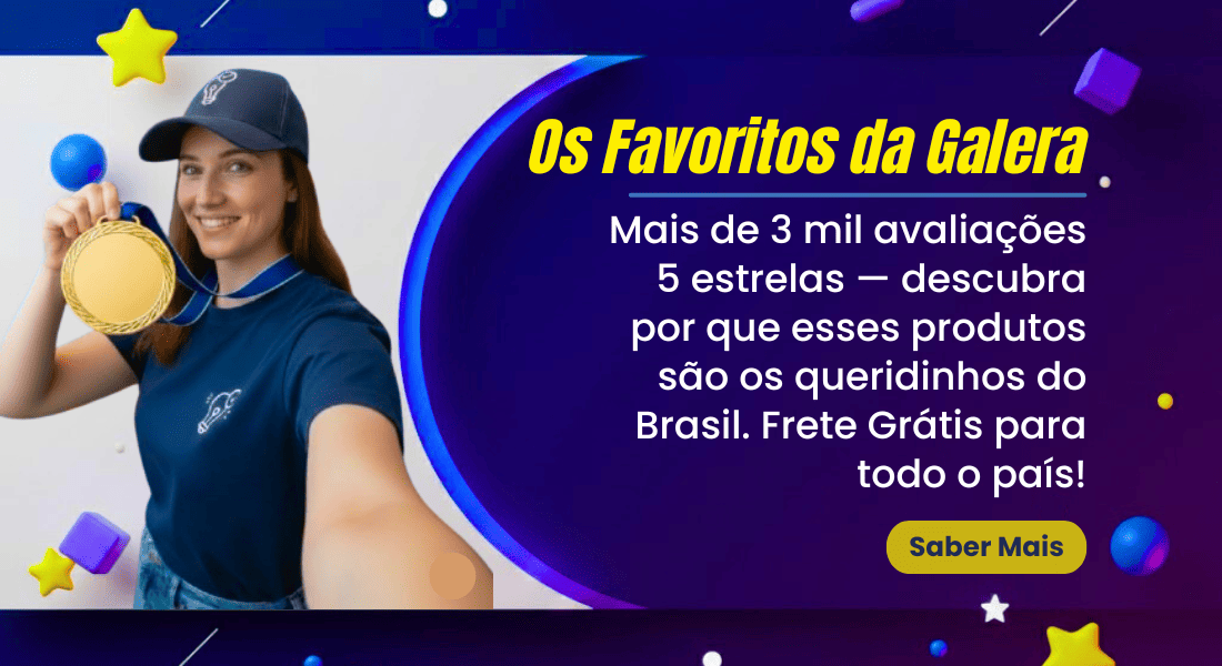 Todos os pedidos saem do Brasil, direto do nosso galpão, com envio rápido e organizado — em até 10 dias úteis você recebe aí na sua porta.