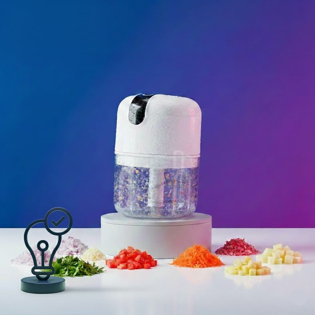 FastMói - Mini Processador Elétrico 3 Lâminas, Tritura Tudo em Segundos!