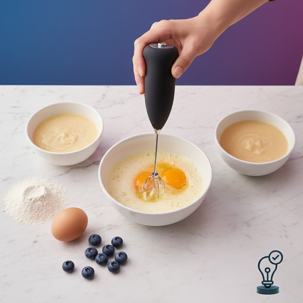 Bate ovos em segundos: ideal para omeletes leves, receitas rápidas ou misturas de panqueca.